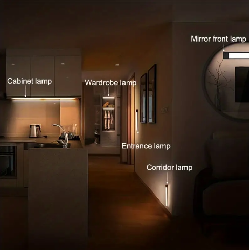 Temu에서 1pc LED 모션 센서 캐비닛 조명, 언더 카운터 옷장 조명, 무선 자석 USB 충전식 주방 야간 조명, 옷장 옷장용 배터리 전원 작동 조명 캐비닛 찬장 계단 복도 선반 3.9 또는 7.9에 대한 놀라운