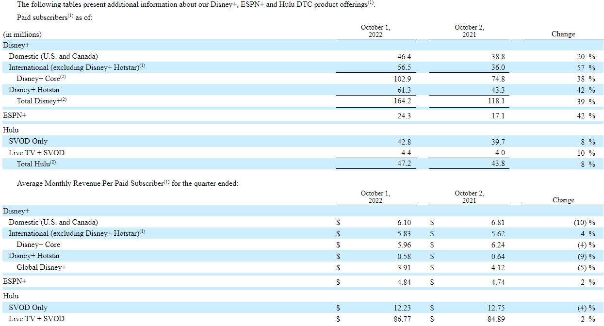 “Our fourth quarter saw strong subscription growth with the addition of 14.6 million total subscriptions, including 12.1 million Disney+ subscribers. The rapid growth of Disney+ in just three years since launch is a direct result of our strategic decision to invest heavily in creating incredible content and rolling out the service internationally, and we expect our DTC operating losses to narrow going forward and that Disney+ will still achieve profitability in fiscal 2024, assuming we do not see a meaningful shift in the economic climate.